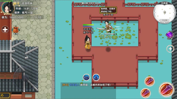 动态事件系统会随机生成家族危机(内鬼、外敌入侵)、仙缘奇遇(古修洞府)等,考验玩家的决策能力。
