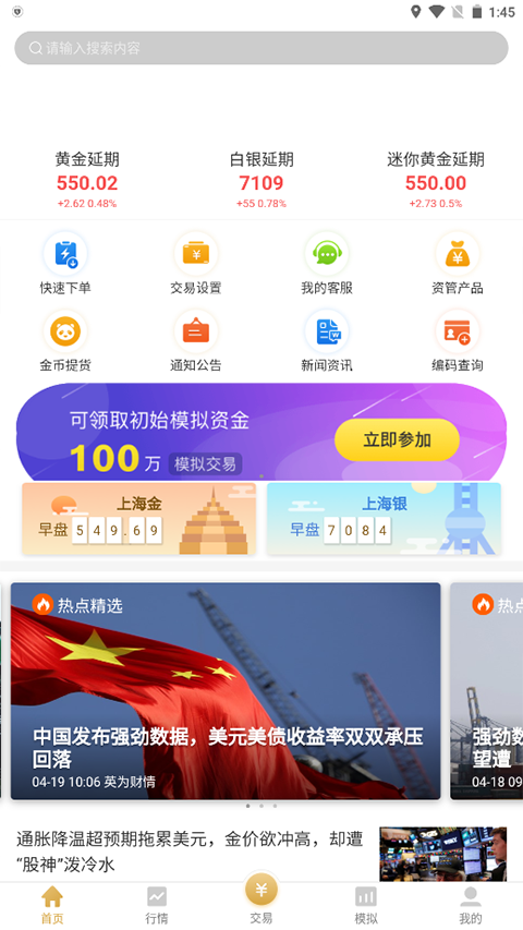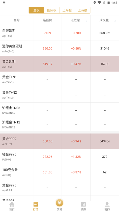 3、丰富的产品体系:支持上金所全部主流产品,包括但不限于现货合约(如Au99.99、Ag99.99)、延期交收合约(黄金T+D、白银T+D),以及“易金通”特有的现金交割合约等,满足不同风险偏好投资者的需求。