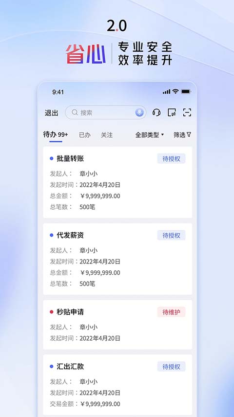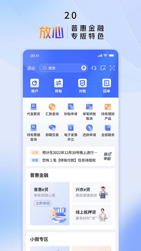 1、全流程移动对公服务:覆盖账户管理、支付结算、代发工资、票据业务、融资贷款等核心对公业务,满足企业日常金融需求。