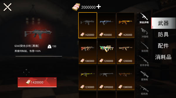 4、点击进入黑市去利用开局送的金币购买需要的各种武器装备以及物品资源,这样就可以去战斗的过程中去使用帮助打败敌人。
