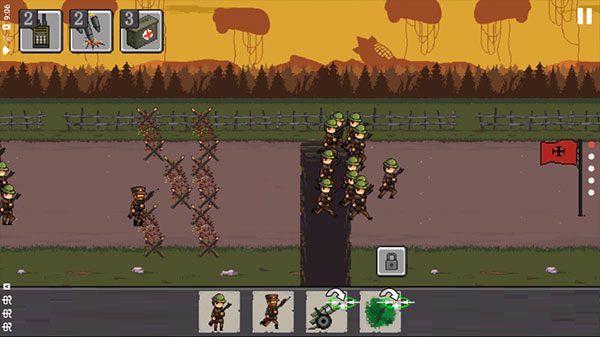 包含步兵、狙击手、机枪班、炮兵、坦克及空军支援单位,各兵种存在克制关系,需要玩家根据战场形势灵活搭配。