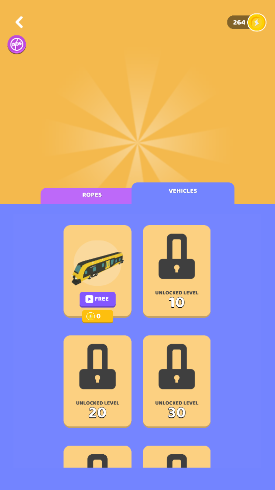 玩家后续还可以使用金币解锁新的交通工具和绳索