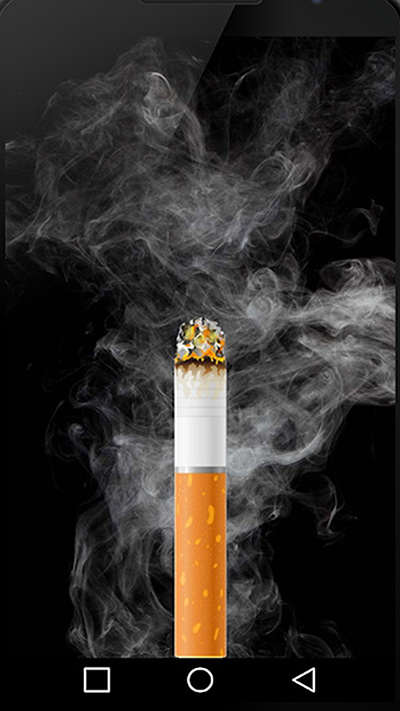 5、好了,你可以假装抽虚拟烟,然后将手机靠近嘴,在麦克风区域吹气(首先需要在设置中启用吹气功能),