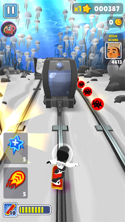 地铁跑酷黑白水下城跑酷游戏《Subway Surfers》的全新主题版本。以”深海探险”为核心主题,将游戏场景从传统的地铁轨道和城市街道,延伸至神秘的黑白风格水下世界。玩家将跟随主角杰克和他的朋友们,探索这座因魔法或科技而沉入海底的古老城市,在充满海洋生物和遗迹的赛道上进行紧张刺激的跑酷冒险。版本采用独特的黑白单色调配以深海蓝点缀的视觉风格,带来全新的美学体验和游戏挑战。