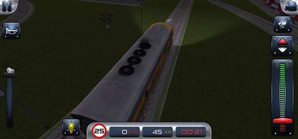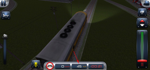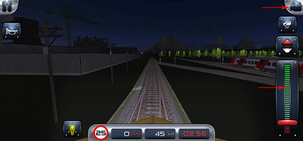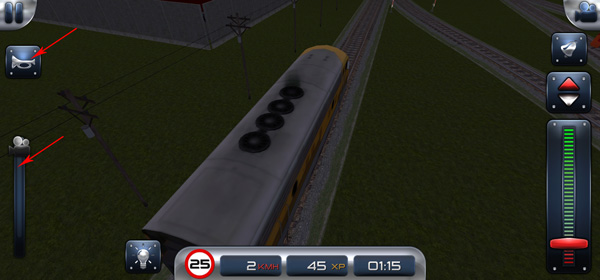 7、右边的从上到下的按钮分别是切换火车的视角、铃铛、前后档位、控制火车的行驶的档把;