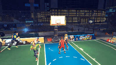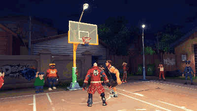 视觉风格:独特的美式漫画渲染技术,人物造型夸张酷炫,球场设计充满街头涂鸦元素