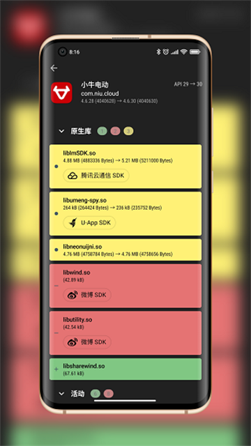 快照对比功能:允许用户为应用创建“快照”,记录某一时刻的应用版本和组件信息。当应用更新后,可通过对比快照,快速发现新增、移除或变更的组件、权限或库,是追踪应用更新的利器。