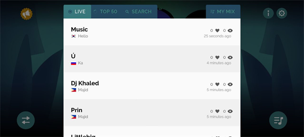 2、点击右下角的选项可以看到别人上传的歌曲以及全球前50名作品。