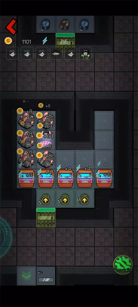 2、策略性建筑与升级系统:人类并非一味躲藏。玩家需要选择房间,升级床铺(经济来源)、建造并升级多种炮塔(如游戏机、魔法球、寒冰炮)和辅助建筑(维修台、能量罩),形成坚固的防御阵线。