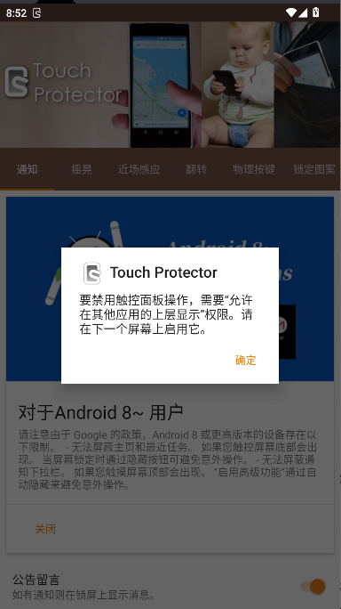 支持自定义手势快速启用/禁用防护功能,无需进入设置界面。