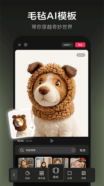 支持一键套用“剪映同款”模板,快速生成热门风格视频。
