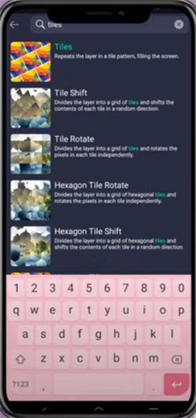 步骤四:搜索您想要的影片效果,例如「Tiles」。