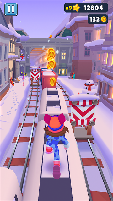 3、多样的道具与升级:游戏中包含喷气背包、超级运动鞋、金币磁铁、双倍得分等多种道具。玩家还可以使用金币永久升级道具的持续时间与效果,助力跑出更高分。