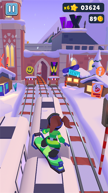 5、流畅的社交与收集体验:玩家可以连接社交账号查看好友排名,进行温和的分数竞赛。同时,收集字母组成“HOVERBOARD”等单词,或完成角色专属收藏册,满足收集欲。