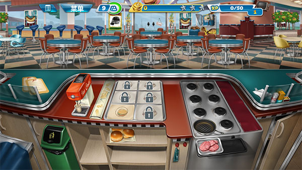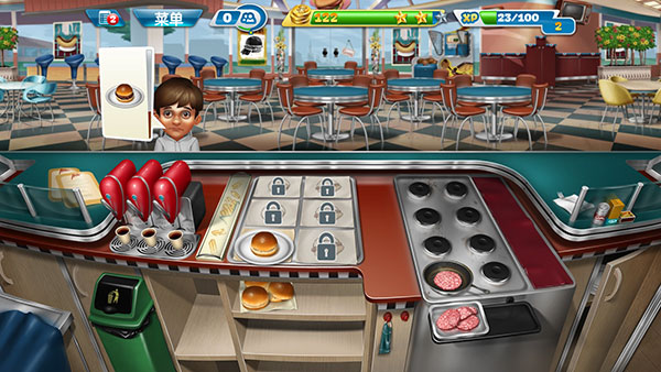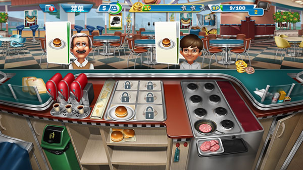 随着玩家不断解锁关卡,会得到更多新的食材和道具,也会越来越手忙脚乱。这里有一个小技巧分享给大家,很多客人会选择点套餐,而套餐中只要上了一个食物就可以增加顾客的等待时间,因此可以常备一些饮品,用于增加顾客的等待时间。