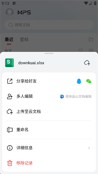 5、保存后可在首页进行查看表格,可进行分享、多人编辑、上传云文档等功能选项。