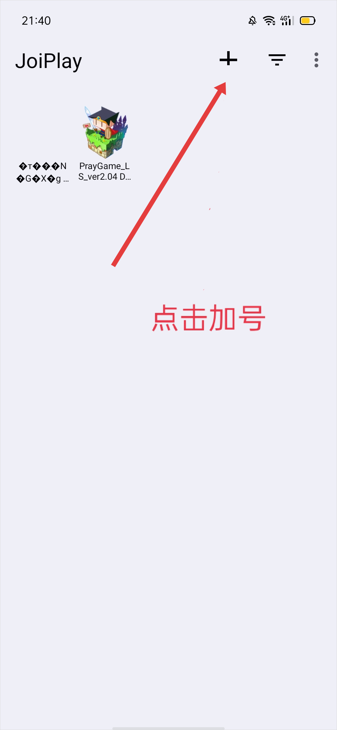 打开Joiplay主界面,点击右上角的“+”按钮进入添加流程。