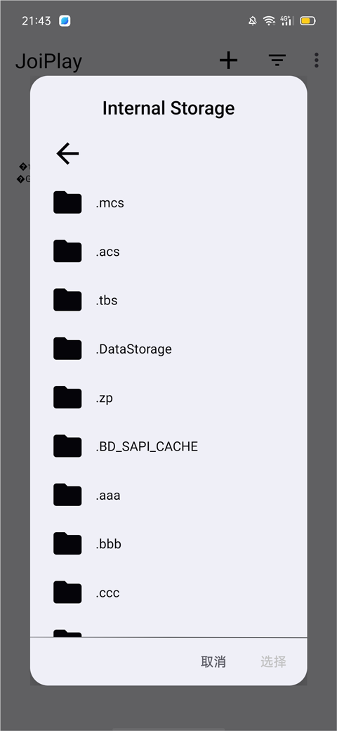选择【添加游戏】后,会弹出文件选择窗口,此时系统会自动跳转到手机存储目录。