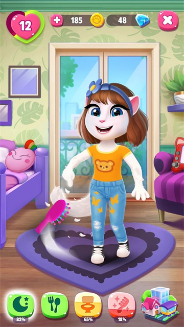 1、立体化互动养成:玩家可通过喂食、洗澡、刷牙、玩耍等方式全方位照料安吉拉,观察其情绪与成长变化