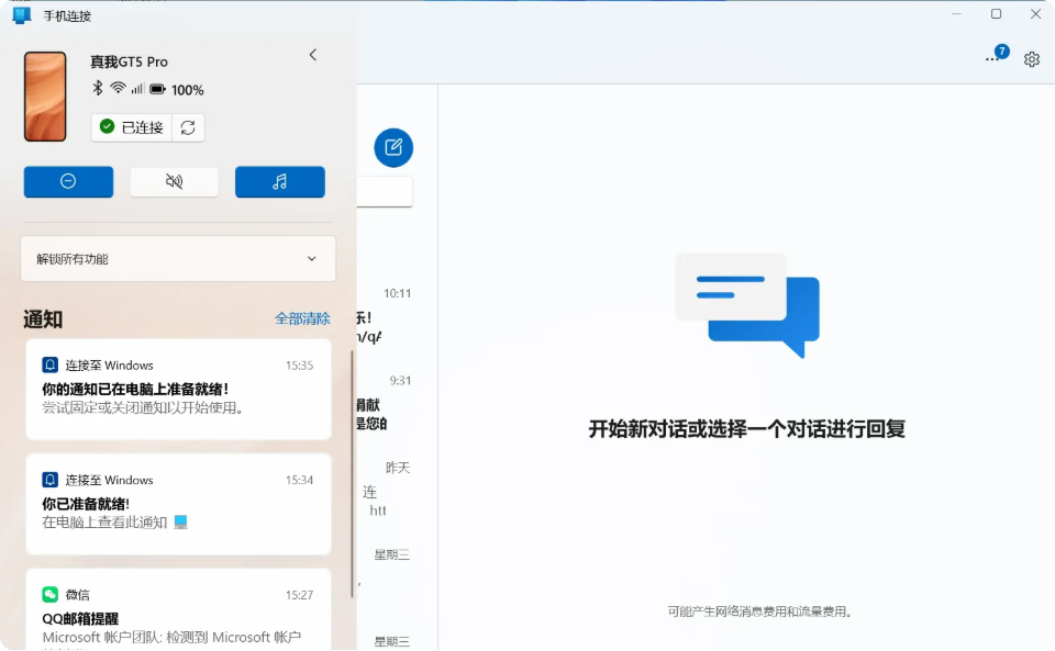 1、即时通知同步:手机收到的所有App推送(微信、短信、邮件等)会实时弹窗显示在电脑右下角,支持直接快速回复,无需低头看手机。