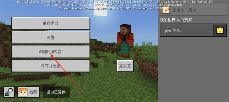 1、进入我的世界测试版游戏,点击上方功能菜单
