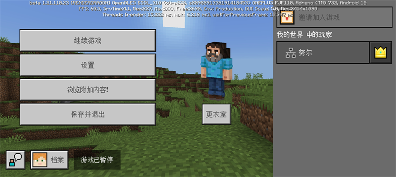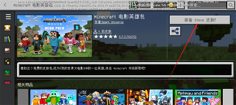 6、然后回到游戏就可以看到角色已经穿上Steve的皮肤了