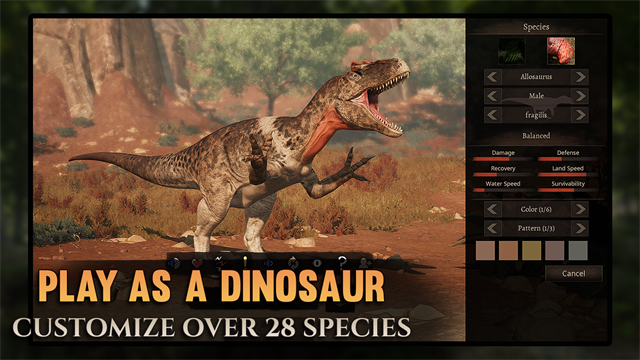 自由的角色成长线: 你可以选择成为一名独来独往的顶级掠食者,也可以加入族群与同伴一起围猎巨型恐龙。游戏不设固定的职业限制,你的成长路径完全由你的选择和行为决定。