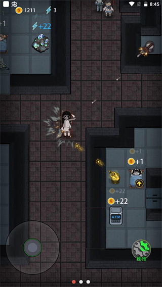 策略博弈深度:游戏不仅仅是简单的建塔。玩家需要在“升级床铺(增加收入)”、“升级大门(增加防御)”、“建造/升级炮台(攻击鬼)”以及“购买道具(维修/减速/瞬间移动)”之间做出平衡。资源管理是胜负的关键。
