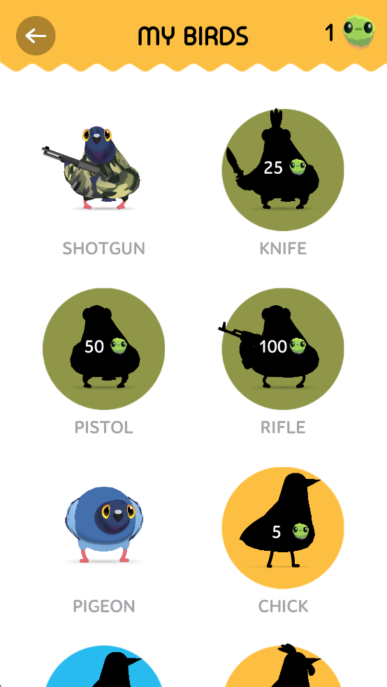 3、收集养成,个性装扮:在闯关过程中,你可以收集绿色虫子和金色虫王。这些虫子是游戏内的通用货币,可以用来在商店中解锁和更换超过50种造型各异的鸟类皮肤及搞怪装饰,让你打造一只独一无二的个性鸽子 。