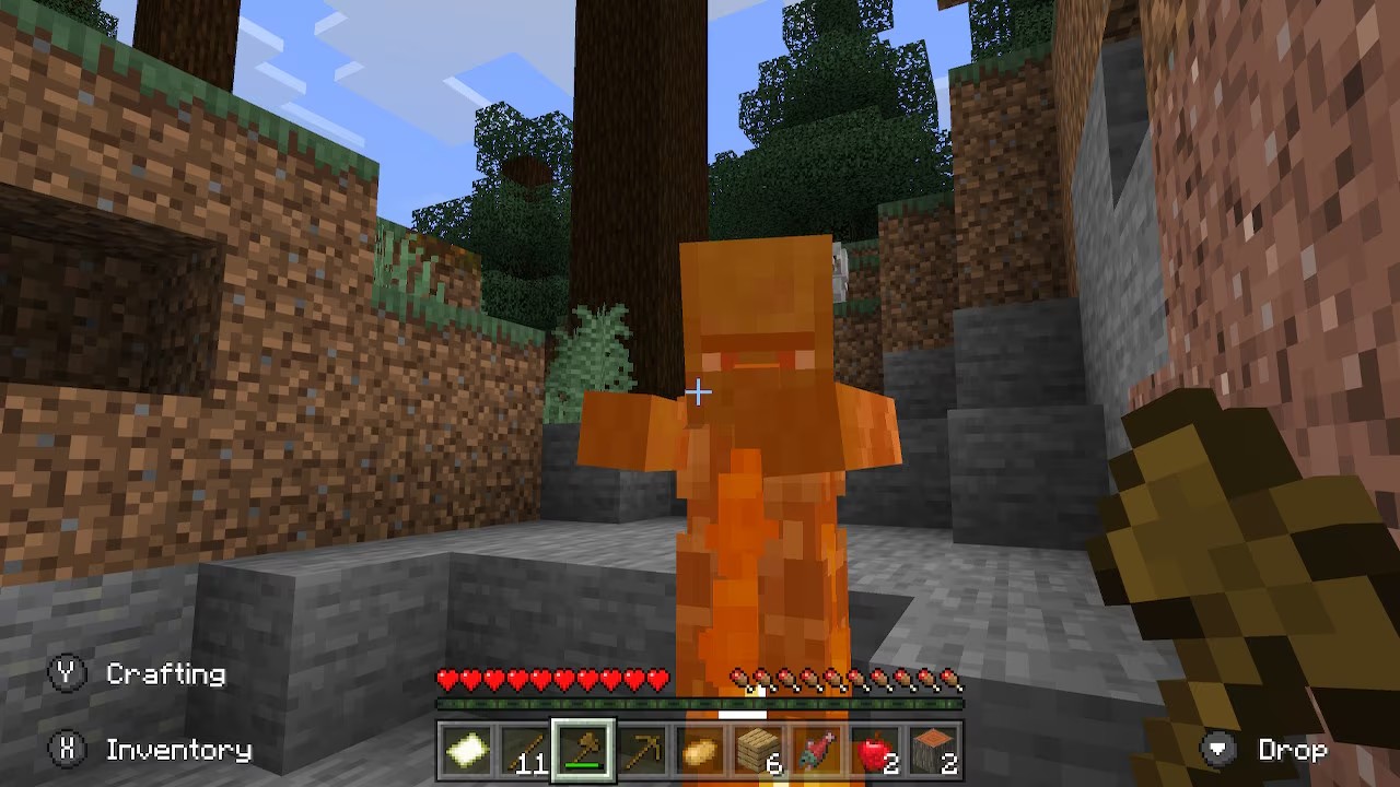 如果您像我一样,每次遇到敌对生物都会受伤,请别担心。您可以通过吃东西来回血!您可以悄悄地从村庄交易面包,用镐击打鸡获得一些生鸡肉(或者如果您是硬核玩家,可以徒手打鸡),您会迅速补充生命值方格,甚至比您说出“等等,什么东西发出的嘶嘶声?”还要快