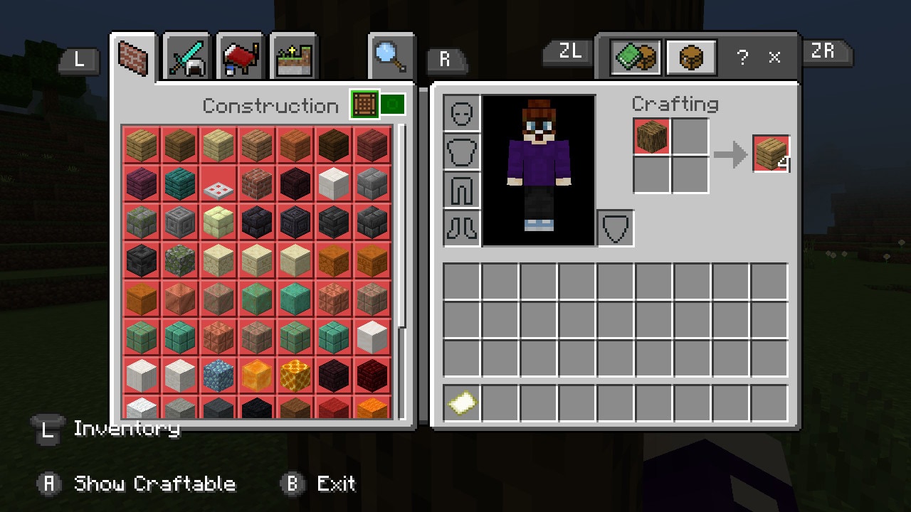 将所需的材料置于终端中,在本例中所需的材料为木头方块。选择“合成”选项,然后好好表扬一下自己吧。您刚刚在 Minecraft 中完成了合成!现在您有四块木板,正好够我们合成一个工作台了。