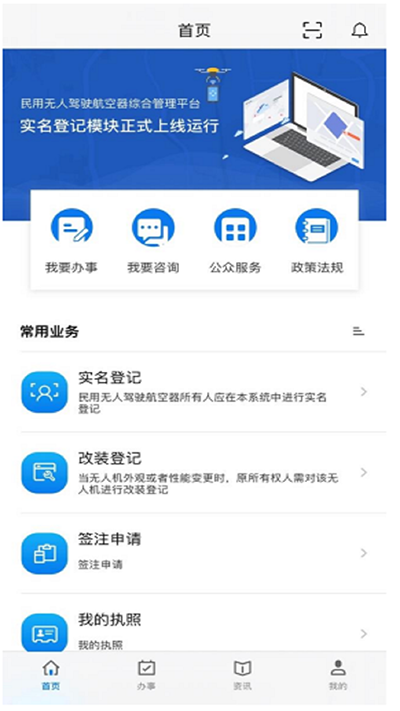 1、在无人机实名登记系统已完成注册的用户,可直接登录。未注册的用户建议通过PC端进行注册和登录。