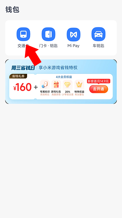 1、进入小米钱包,点击交通卡选项,如图所示