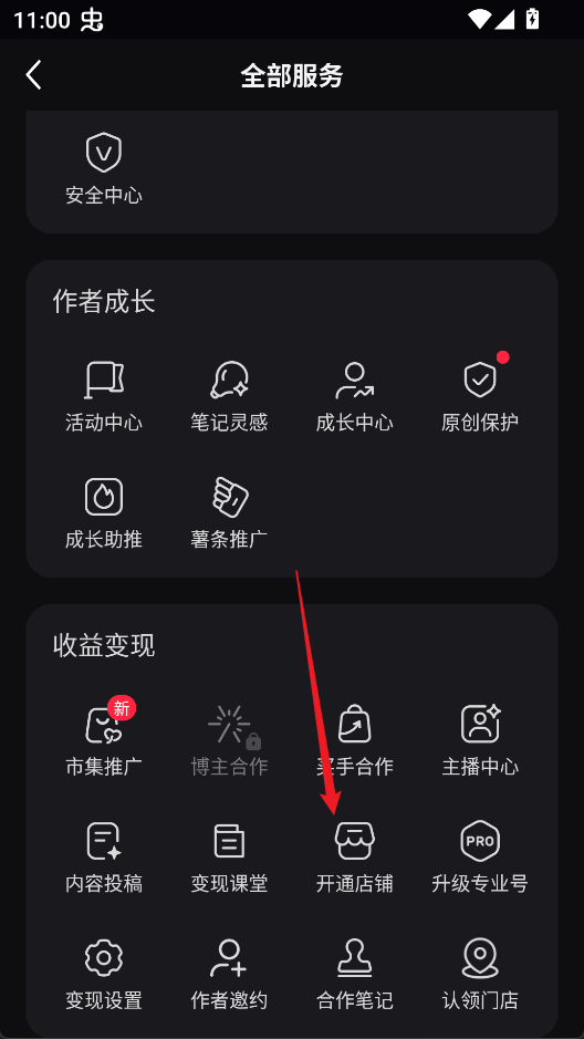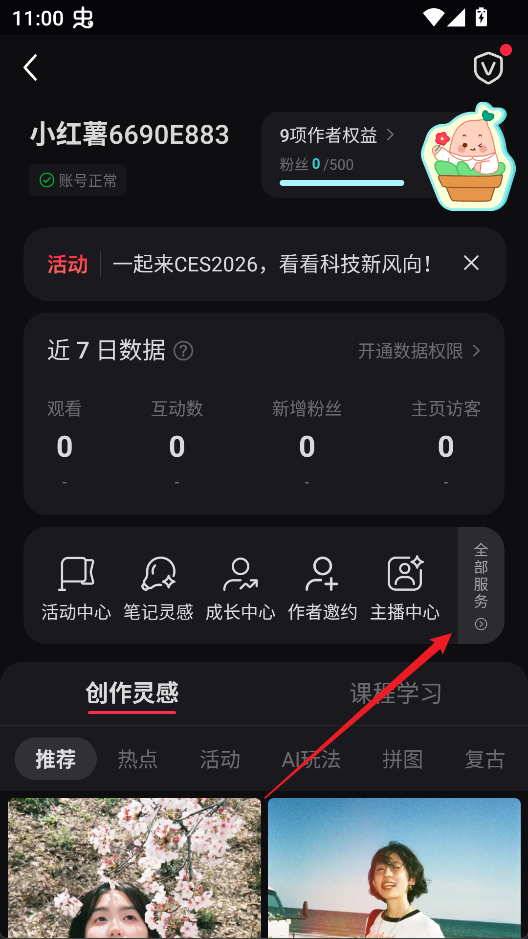 3、进入创作者中心后,选择【全部服务】查看完整功能。