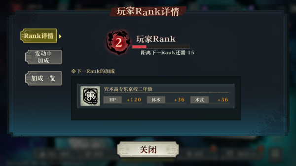 可以确认当前已获得的经验值、到达下个Rank需要的经验值以及Rank提高后可以获得的加成。