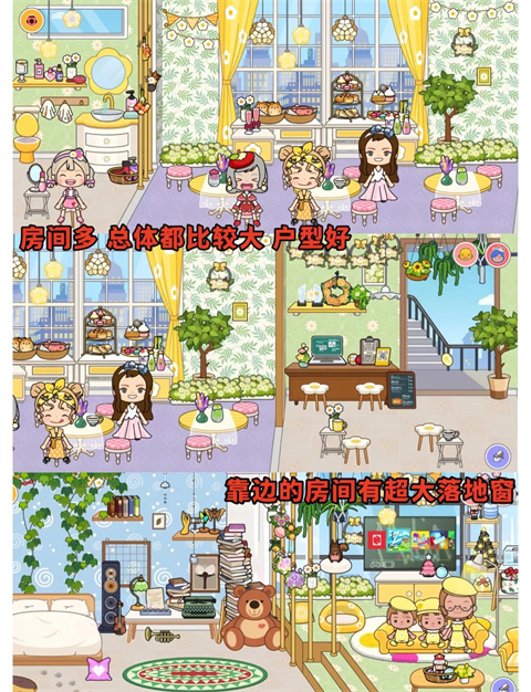 1、米加小镇更新黄色花朵双重自建房、蓝图保存功能、黄色公寓家具包。