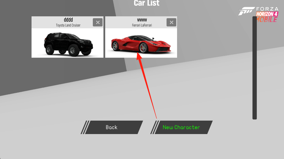 1、打开地平线4手机版游戏,点击【CHANGE CAR】