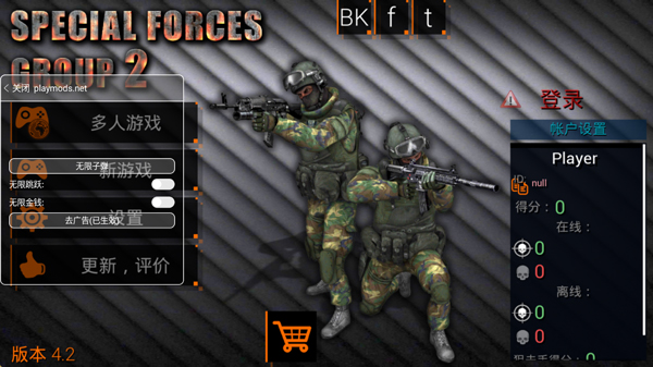 特种部队小组2破解版是一款第一人称射击FPS动作射击手游,该版本已完成破解,内置Mod菜单,玩家通过修改选项可对子弹、跳跃、金钱等多项数据进行自定义修改,但是需要断网进入游戏。特种部队小组2基于经典的反恐精英(cs)玩法为基础,以快节奏的实时对抗为核心,凭借极低的配置需求和极高的可玩性,成为了移动端长盛不衰的战术射击佳作。