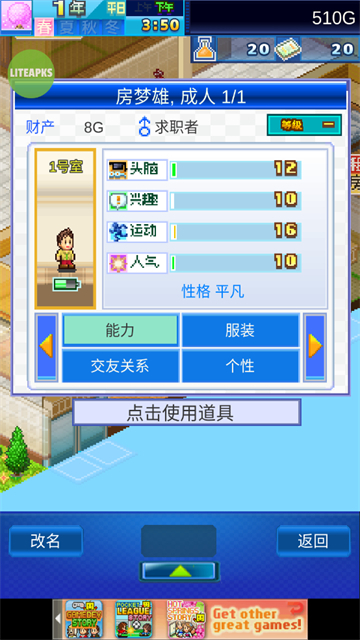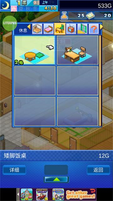 你可以自由选择房间的布局、地板、墙壁,并摆放各种家具。不同的家具组合不仅能提升房间的舒适度,还会影响居民的属性(如感性、体力、智力等),从而影响他们的职业发展。