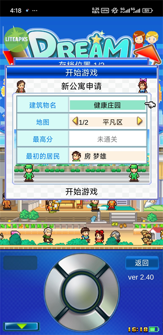 选择公寓的名称、地图区域以及最初的居民,根据你的喜好,设定这些初始参数。