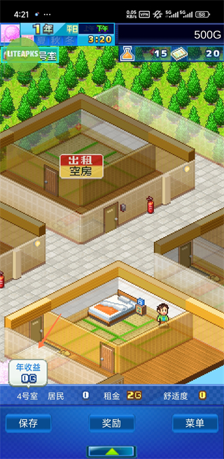 游戏内有很多区域是你可以出租的地方,在各个房间设置家具增加舒适度吧。