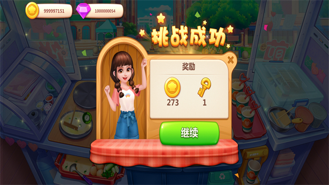 3、满足客人需求后,就可以挑战成功,之后,获得【金币】和【钥匙】后继续挑战