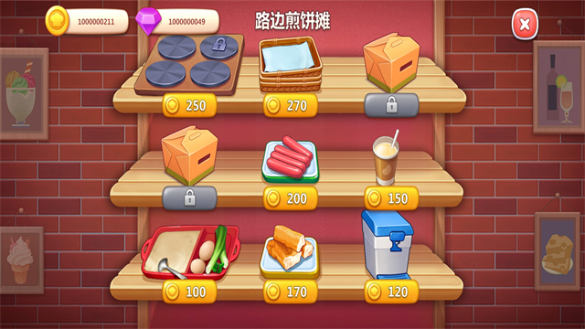 5、其中还可以进行【餐厅升级】,其中花费金币解锁【煎饼锅】,可以加快食物的制作,【煎饼油纸】可以放更多食物