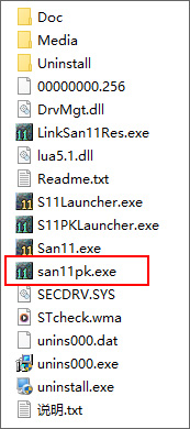 1、下载解压后,直接点击san11pk开始游戏;