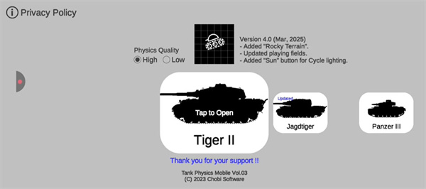 1、启动坦克物理模拟器3游戏后,玩家可以在车库界面浏览并挑选多种型号的坦克。