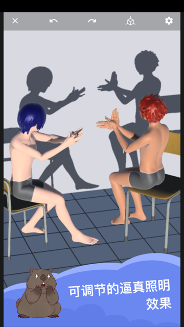 4、可自定义的3D场景搭建:从简单的几何体到复杂的室内家具、自然植被,你可以像搭积木一样快速搭建场景。每个道具都支持物理碰撞,可以自然堆叠,快速构建空间透视关系。