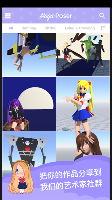 2、打破知识瓶颈:即使是初学者,也能通过3D辅助快速理解复杂的人体动态和空间透视,画出远超自身手绘基础的作品。