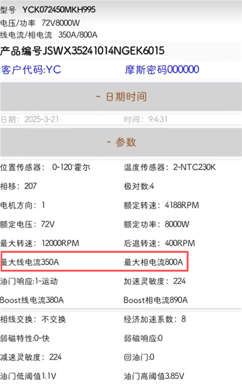 2、深度参数自定义:不同于普通的傻瓜式控制软件,南京远驱App允许用户深入到控制器的底层逻辑,对油门响应、相电流、母线电流、弱磁增速等数十项高级参数进行精细调节,满足极致的性能调校需求。