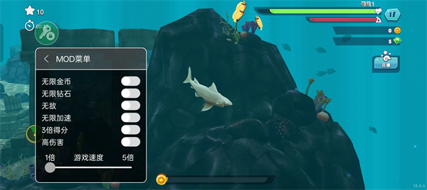 紧张刺激的淘金热:当屏幕出现“淘金热”状态时,你的鲨鱼将进入短暂的无敌状态,移动速度大幅提升,可以毫无顾忌地疯狂吞噬眼前的一切,享受短时间内积分和金币暴涨的快感。