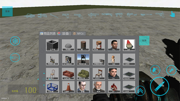 2、丰富物理道具:数百种道具、武器、NPC和载具可供调用,包括重力枪、物理枪等标志性工具。